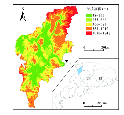 研究区位于广东省西北部山区县——阳山县,地理位置为东经112°22′~113°01′E,北纬23°57′~24°56′N之间(图1)。全境东西宽67 km,南北长104 km。属南岭山脉南麓,连江中游,辖17个乡镇,总面积3 418 km2。东临韶关市乳源县、英德市;南连清新县、肇庆市广宁县;西及连南县、肇庆市怀集县;北邻连州市,并与湖南省宜章市接壤。境内内地形复杂,由大陆架隆起的山地、丘陵和少量冲击性平原、滩地等组成。气候温和,年平均气温20.3℃,年降雨量1 850 mm,垂直气温差达到9℃。土地利用整体结构以农用地为主,其余大部分为林地。农业资源丰富,农业产品繁多,农用地以种植经济作物为主,其中粮食作物居多。总面积为332 953 hm2,其中耕地资源总量38 738 hm2,占土地总面积的11.6%。2009年末总人口数为54.24万,其中农业人口为47.42万人,非农业人口为6.82万,农业人口约占全县总人口的87.43%,是广东省的一个典型的农业县。