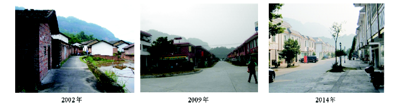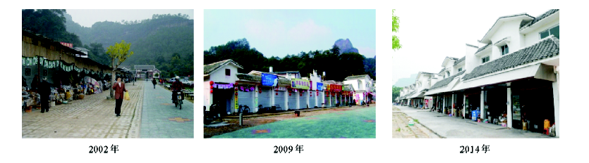 此阶段伴随着丹霞山旅游的发展,在政府、农村社区以及外来资本、旅游移民和游客等外来力量的共同作用下,两村通过旧村拆建工程基本上实现土地利用、产业结构、就业结构和生活方式的非农化,先前贫穷落后的农村,除了户籍和属地等身份特征未变外,无论从物质景观上还是社会生活上都转变成为充满现代气息的城镇化旅游社区。