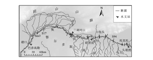 Fig.1 Inner Mongolia reach of the Huanghe River and location of cross sections