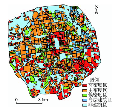 Fig. 1 Classification results of regions with different building densities in Beijing