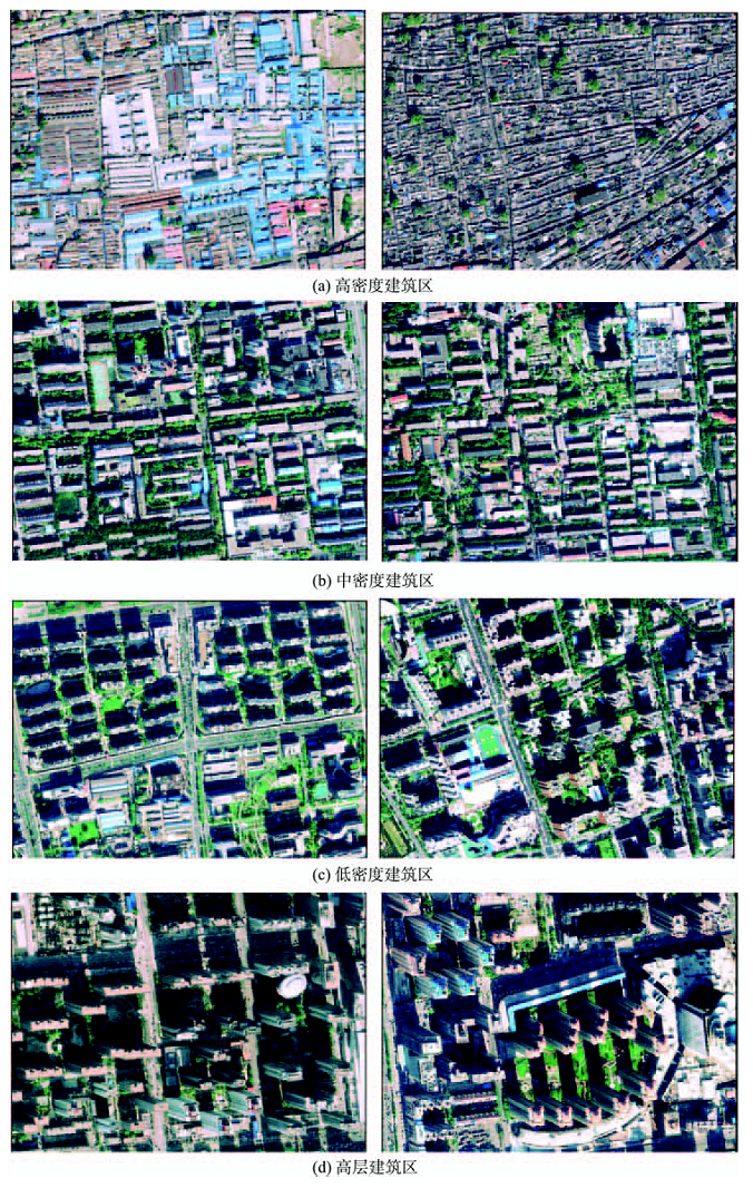 图2 北京市不同建筑密度区快鸟高分辨率遥感影像特征