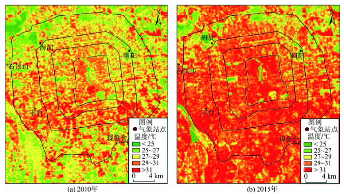 Fig. 5 Comparison of water LST of Beijingbetween 2010 and 2015