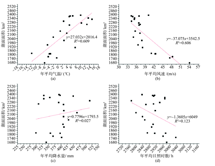 湖泊(特别是内陆湖)作为全球气候变化的敏感区域,是气候变化与环境变异的指示器,其面积变化在一定程度上可反映区域的气候变化。因此,精确监测湖泊面积的时空变化,对分析区域生态环境变化具有重要的意义。本文基于ESTARFM时空数据融合模型,利用MODIS数据模拟了2000年后无法得到的Landsat数据;利用NDWI和MNDWI 2种水体指数并辅以DEM数据分析了1976-2014年西藏色林错湖湖面面积的时空变化;综合湖区周围6个气象站点的气象数据(1970-2014年),探究了湖面面积变化的原因及其对气候变化的响应。结果表明:(1)利用ESTARFM时空融合模型得到的Landsat-Like数据与真实的Landsat数据在水体信息提取方面具有较高的相关性,R2可达0.93,时空数据融合的结果可用于湖泊水体的信息提取;(2)近40年来(1976-2014年),色林错湖处于持续扩张状态,面积呈较显著的增长趋势,增加了近711.652 km2,增幅为42.36%,年平均增长速率约为18.728 km2a-1,增长最快时可达55.954 km2a-1;湖面面积变化先后经历了平稳变化-迅速变化-平稳变化3个阶段;北部湖区在40年间变化最为明显,向北扩展了约22.812 km;2003-2005年,南部湖区已与雅根错湖连为一体,随后二者共同扩张;(3)气温的持续升高造成的冰雪融水补给增加可能是导致湖泊面积扩张的主要因素,风速的降低为次要因素,湖面的面积变化与降水量、日照时数的变化相关性不明显。