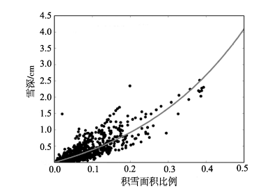 式中:FSC为积雪面积比例;SD为该积雪面积比例所对应的雪深,单位为cm;该拟合曲线对应的决定系数R2值为0.67。