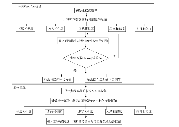 | Fig.3 The flowchart of road network matching based on BP neural network |