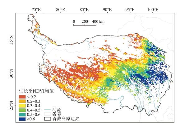 图3 1982~2013年青藏高原高寒草地生长季NDVI均值空间分布特征