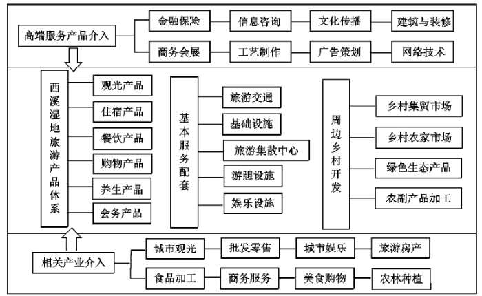 | 不同点 | 关联效应 | 基于投入产出关系的上下游间纵向关联 | 基于多元旅游需求而串联的不同要素间的横向关联 |