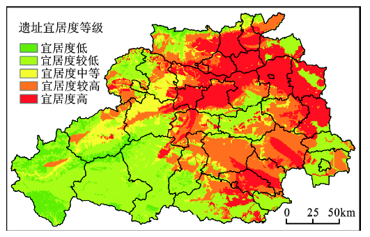 在国内外对聚落遗址的综合评价研究中,各种综合评价方法已经被广泛采用,如通过获取史前文化时期聚落遗址分布与环境因子的关系[18],构造适宜性指数评价系统,建立聚落遗址指数模型,来探究郑州-洛阳地区史前人类聚落遗址空间分布规律。