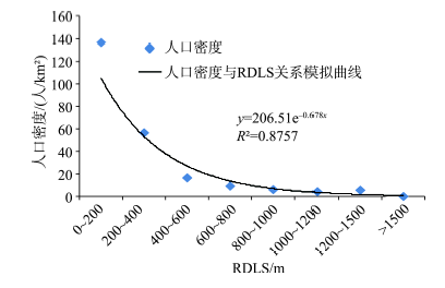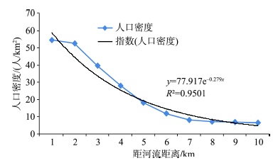 图5 一江两河地区人口密度与河流关系的模拟曲线