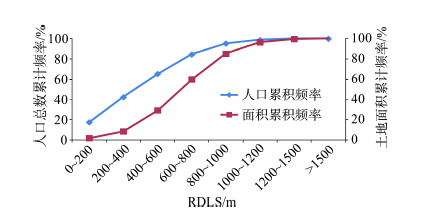 | 距河流的 距离/km | 人口总数/ 104人 | 占比/ % | 人口总数 累积/104人 | 人口累积 频率/% | 人口密度/(人/km2) |