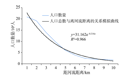图4 一江两河地区人口数量与河流关系的模拟曲线