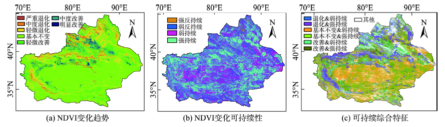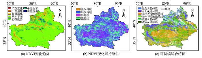 Fig. 4 Tendency, sustainability and comprehensive characteristics of NDVI variation