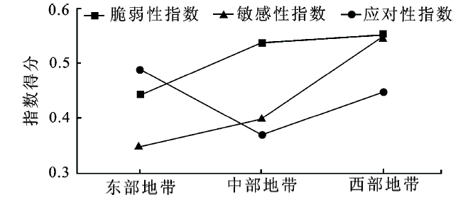 图1 人口健康脆弱性、敏感性与应对性指数带间差异