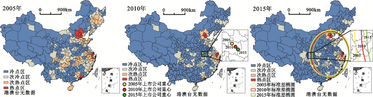 | 图2 上市公司总部重心、标准差椭圆及 |