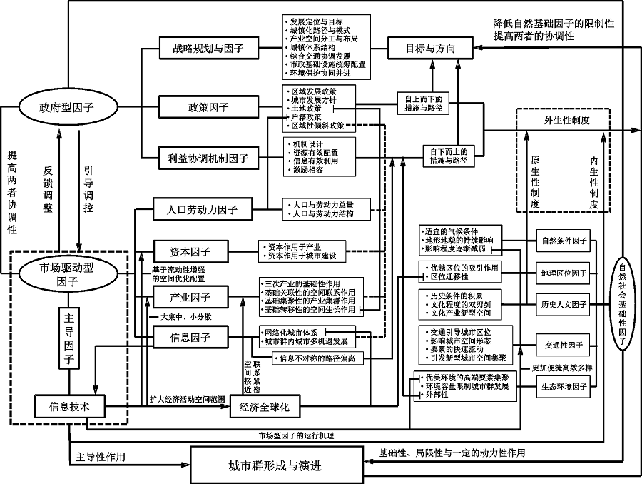 | 图2 城市群形成与演进的多因子综合作用模型 |