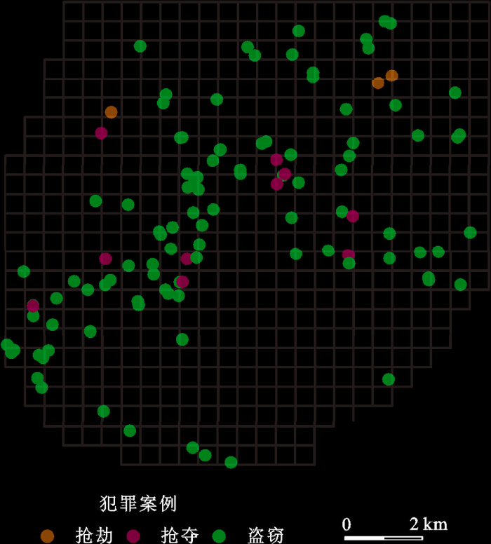 2.2 H市城区两抢一盗警情及犯罪地理画像的空间分布特征