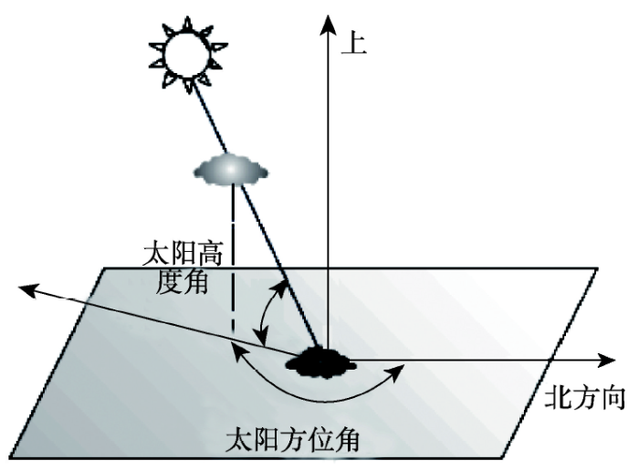 Fig. 2 The influence of the solar elevation angle and the solar azimuth on the horizontal distance and the relative direction of cloud and cloud shadow