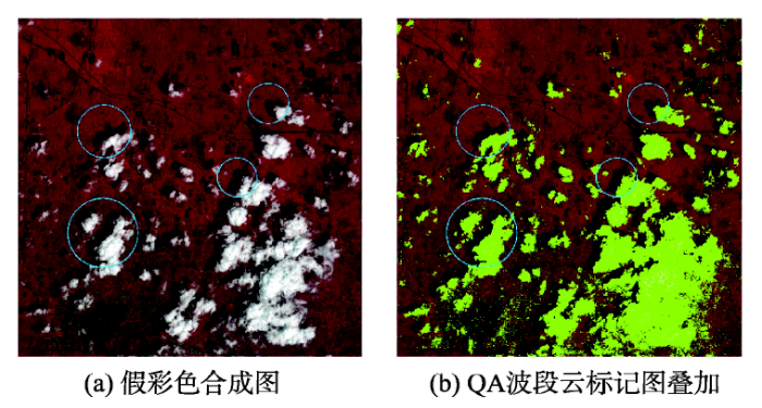注:蓝色圆圈标示云影未识别,绿色部分为云标记结果