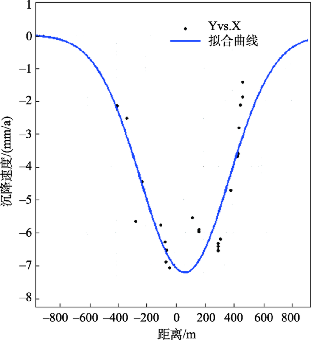 为了更好地研究地铁轨道沿线地表沉降槽规律,选取地铁沿线沉降较严重区域,引入经验公式对InSAR监测结果进行横向沉降曲线拟合,以获取地面沉降槽的最大值、沉降槽宽度等,揭示地铁隧道沉降槽的空间分布。