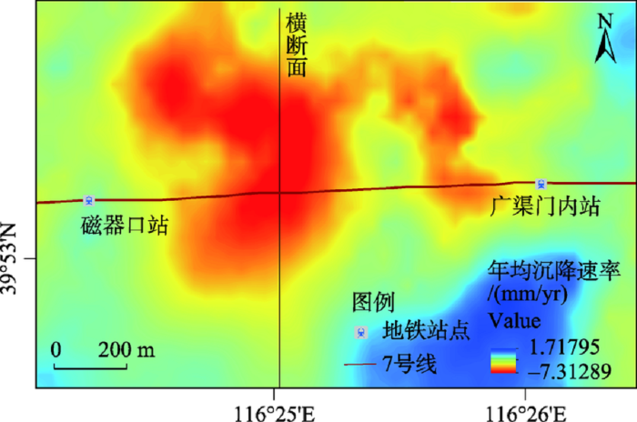图14 地铁7号线磁器口-广渠门内站年均沉降速率图