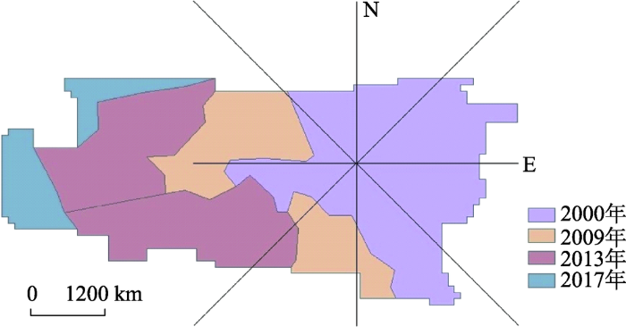 由图6可看出,2000-2017年虞城县城区的扩展以老城城区为核心,向四周均有扩展,但城区向西部和南部扩展的趋势最为明显,且有逐渐向西向南扩展的趋势,其他方向变化不显著。采用遥感影像数据处理与GIS空间分析相结合的技术处理多时相遥感影像数据,能在宏观上把握城市发展方向,进而为政府规划、建设部门提供宏观管理信息和科学决策依据。