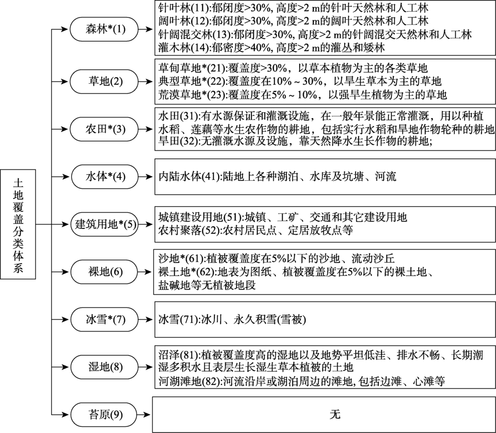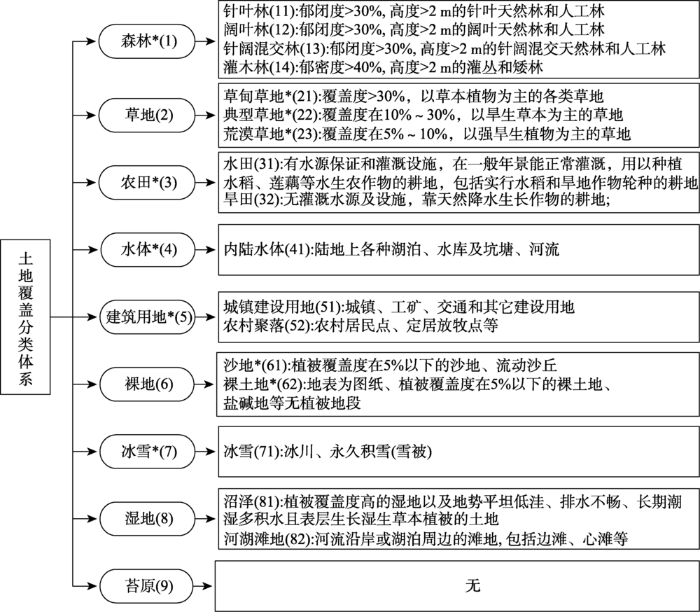 注:*表示本研究中实际分出的土地覆盖类别,共计10种