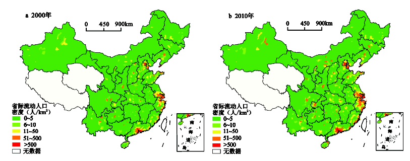 | Fig.1 Inter-provincial floating population density map in China in 2000 and 2010 |