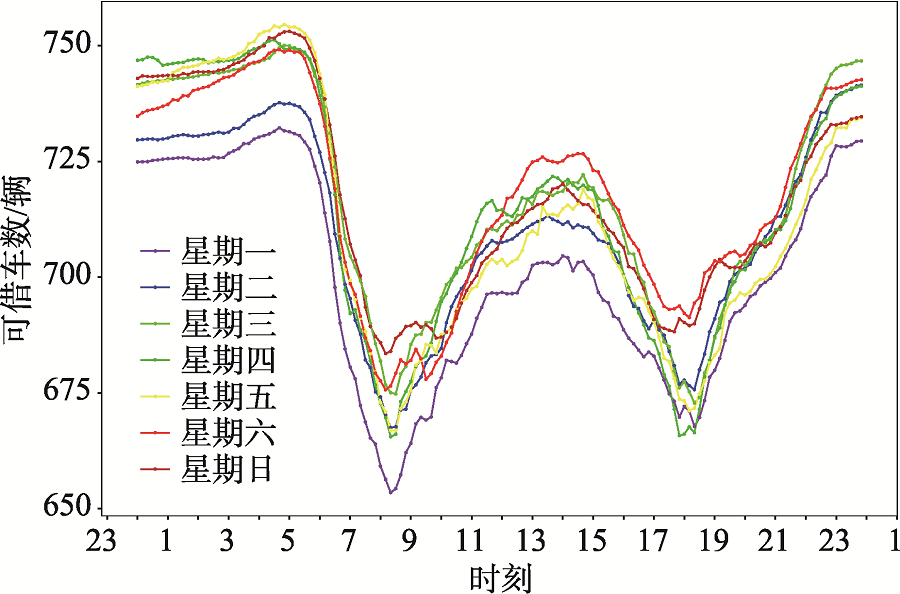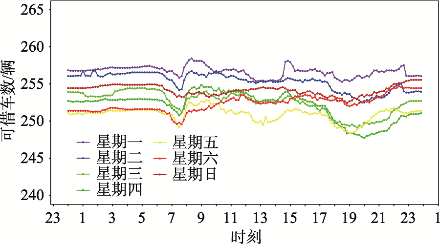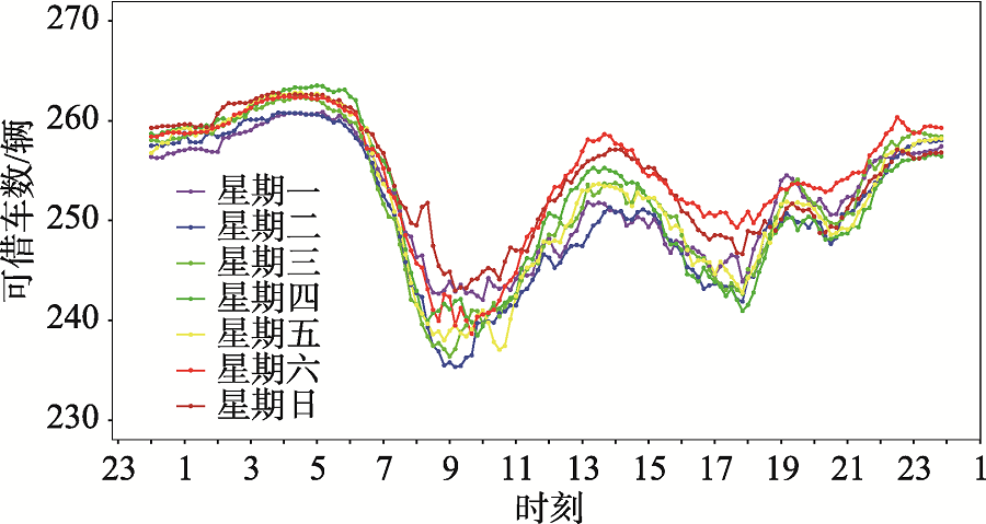 图2 惠州市惠城区站点可借车数平均值日变化