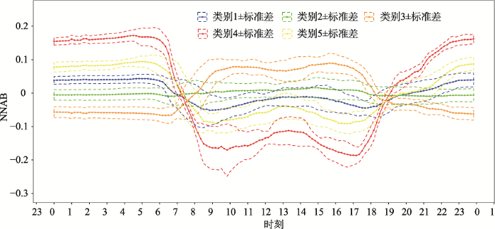 图9 韶关市站点工作日聚类结果NNAB日变化趋势