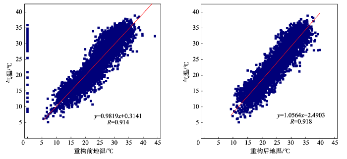 Fig. 3 Scatter plots of original LST and reconstructed LST with air temperature