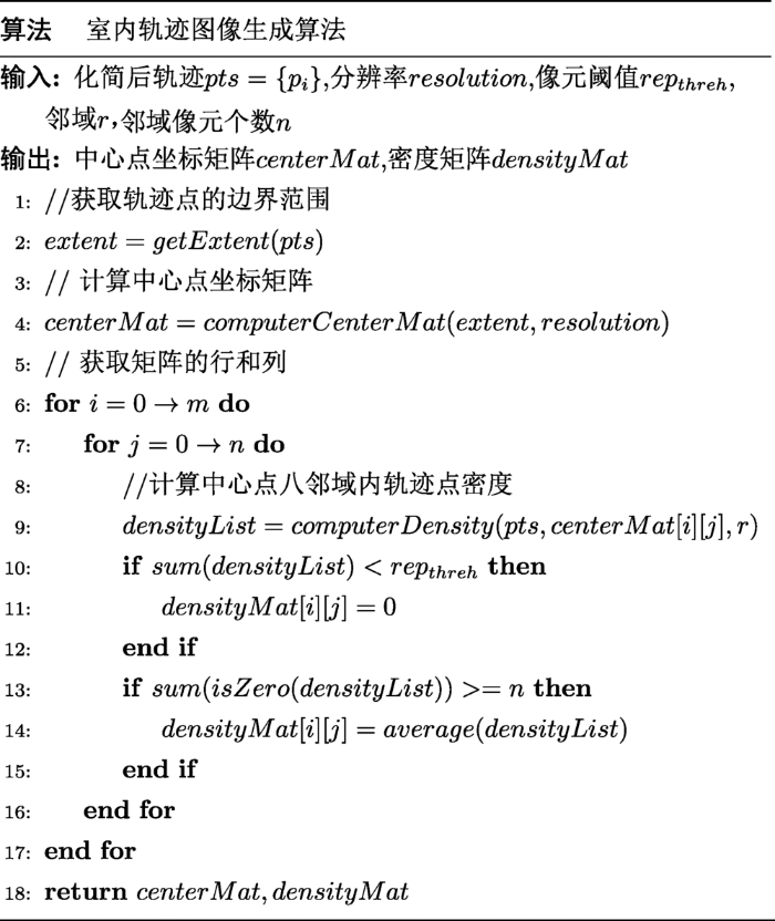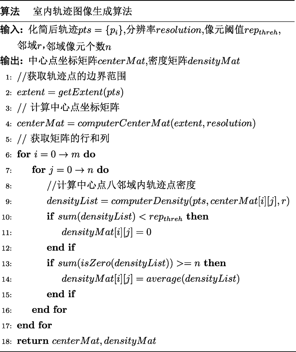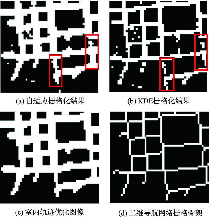 本文提出一种改进KNN室内轨迹自适应栅格化算法,根据栅格邻域内点的个数和密度,自动调节栅格化时统计阈值,克服不同廊道区域轨迹密度差异所导致的提取误差,增强轨迹稀疏区域的拓扑连通性,并有效克服噪声的影响。遍历所有栅格像元