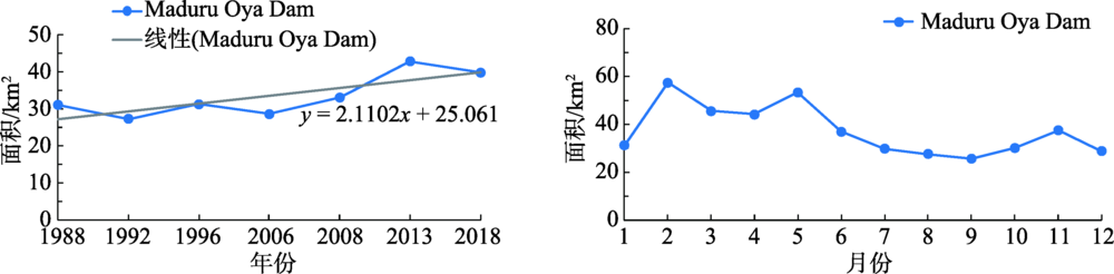 图3 Maduru Oya斯里兰卡水库面积年际和年内月际变化