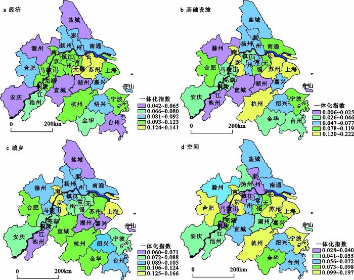 2.2 一体化指数各维度空间分布