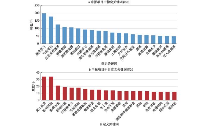 Top 20 system-defined and user-defined keywords in project applications of Geographical Science in 2021