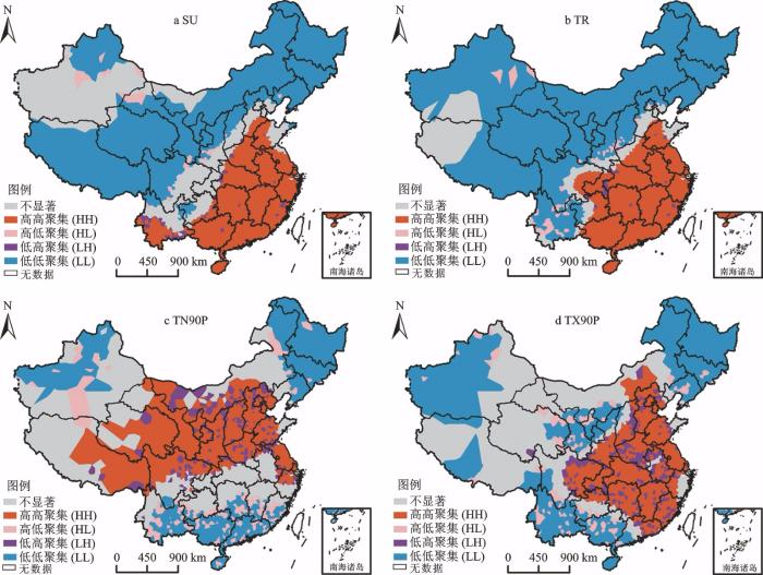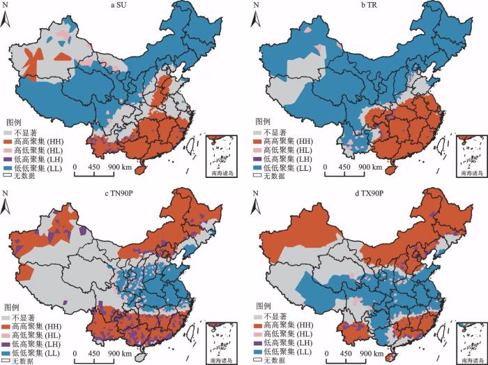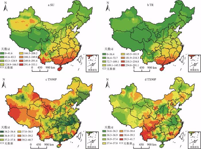 SU为夏天日数;TR 为热夜日数; TN90P 为暖夜日数; TX90P 为暖昼日数;未含港澳台数据