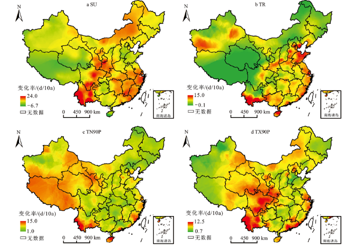 SU 为夏天日数; TR 为热夜日数; TN90P 为暖夜日数; TX90P 为暖昼日数;未含港澳台数据