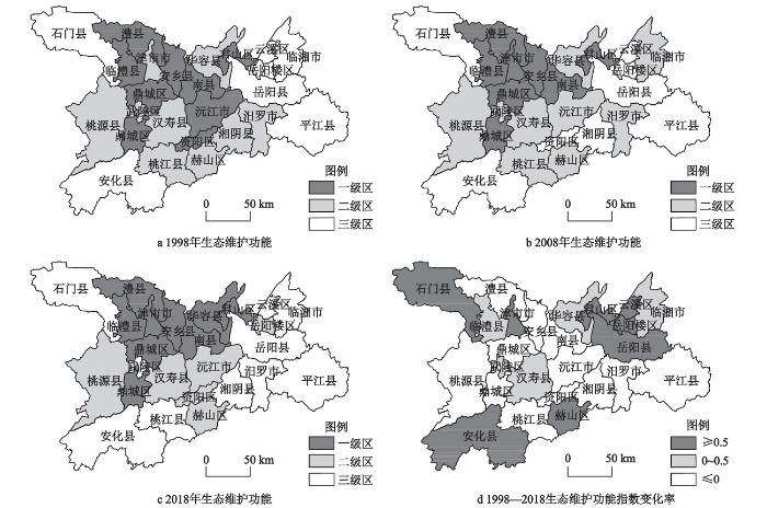 1998—2018年洞庭湖地区耕地生态维护功能空间变化