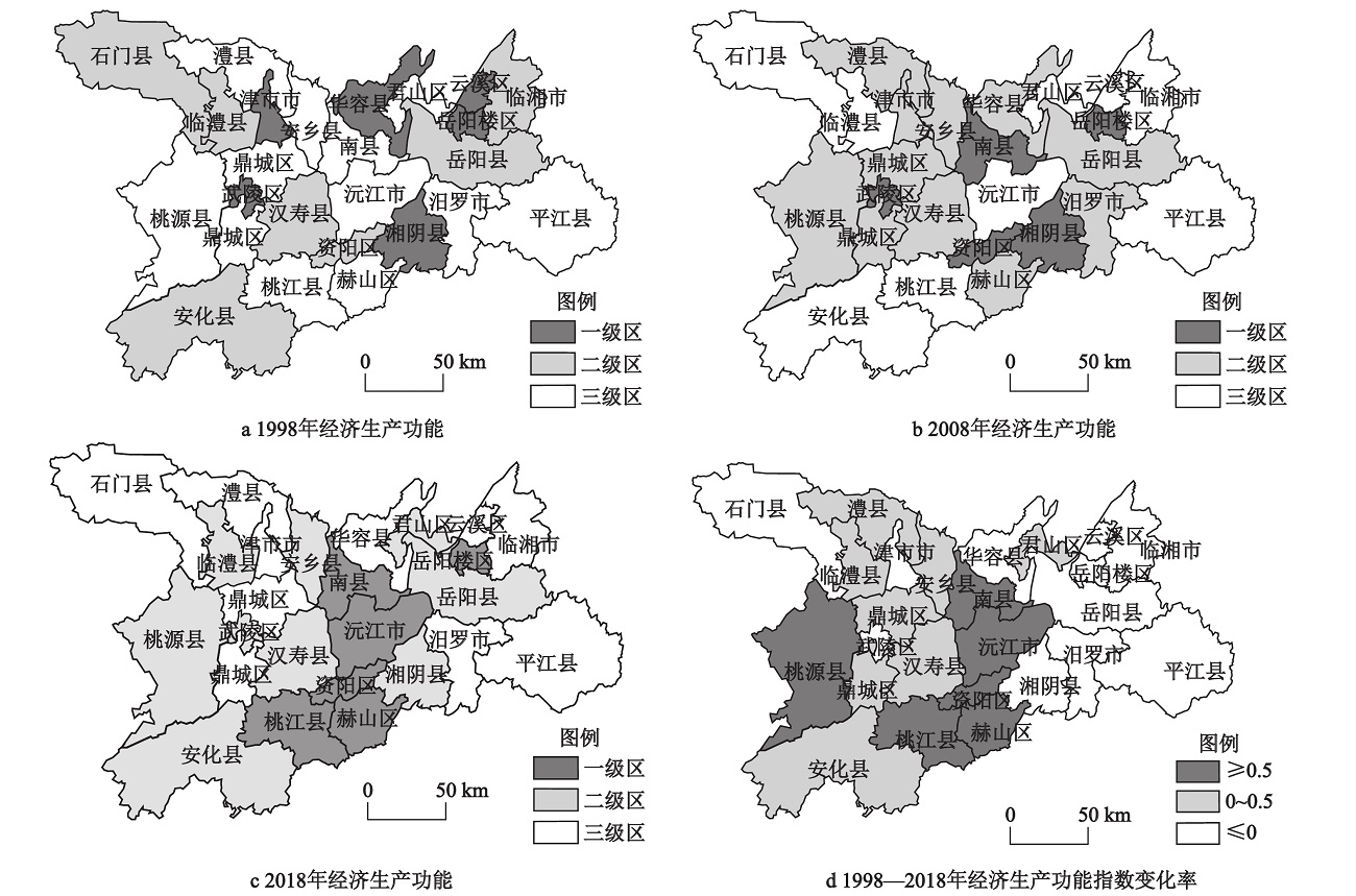 图1 1998—2018年洞庭湖地区耕地经济生产功能空间变化 |