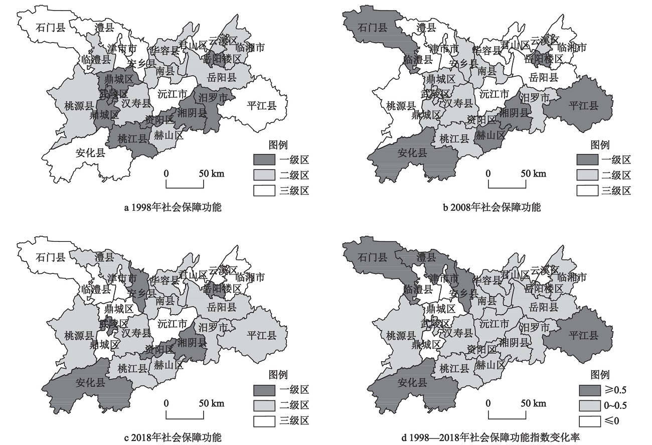 图2 1998—2018年洞庭湖地区耕地社会保障功能空间变化 |