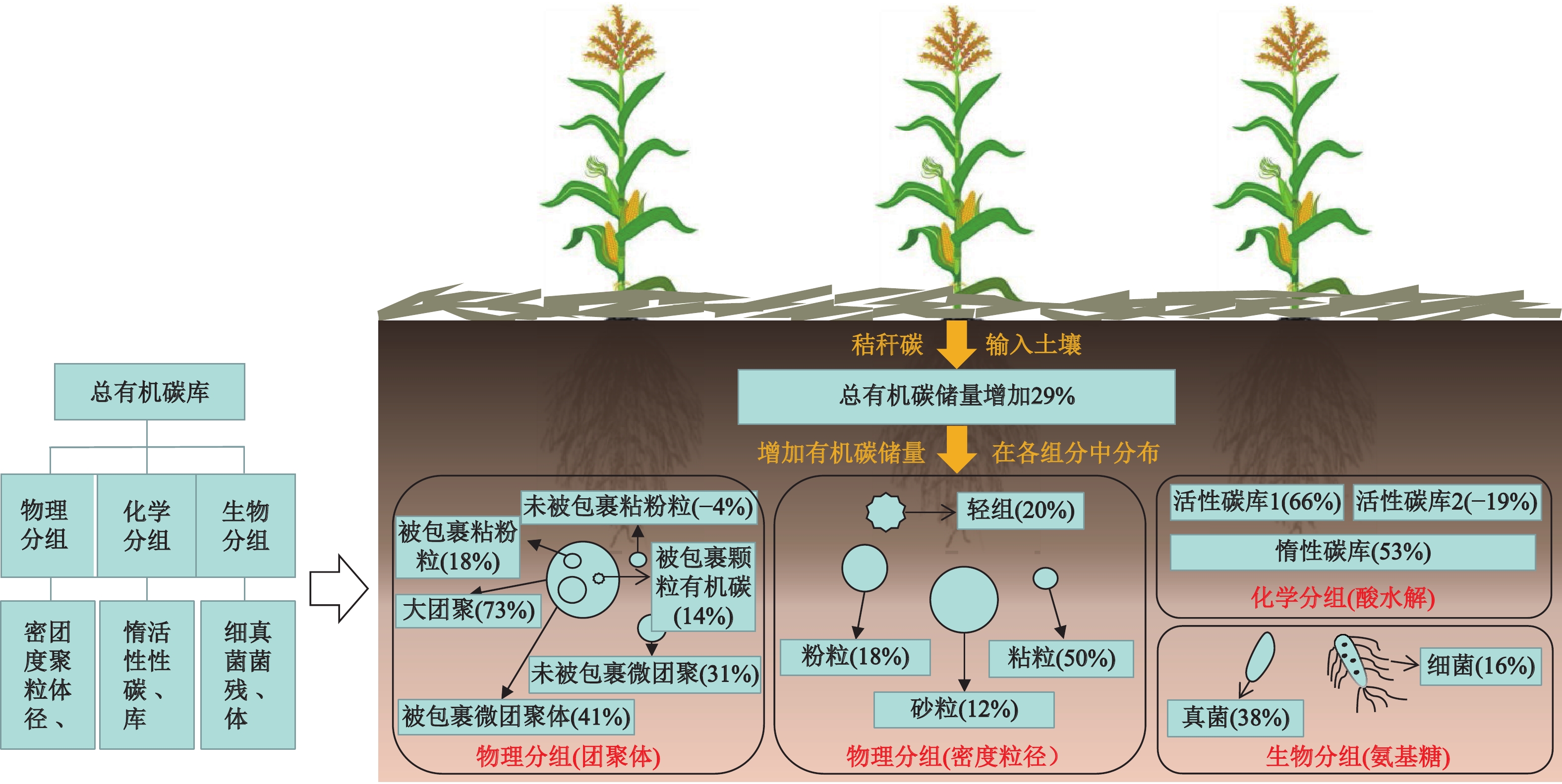 | Fig. 2 Changes of soil organic carbon storage in different components of black soil under conservation tillage (0-20 cm) |