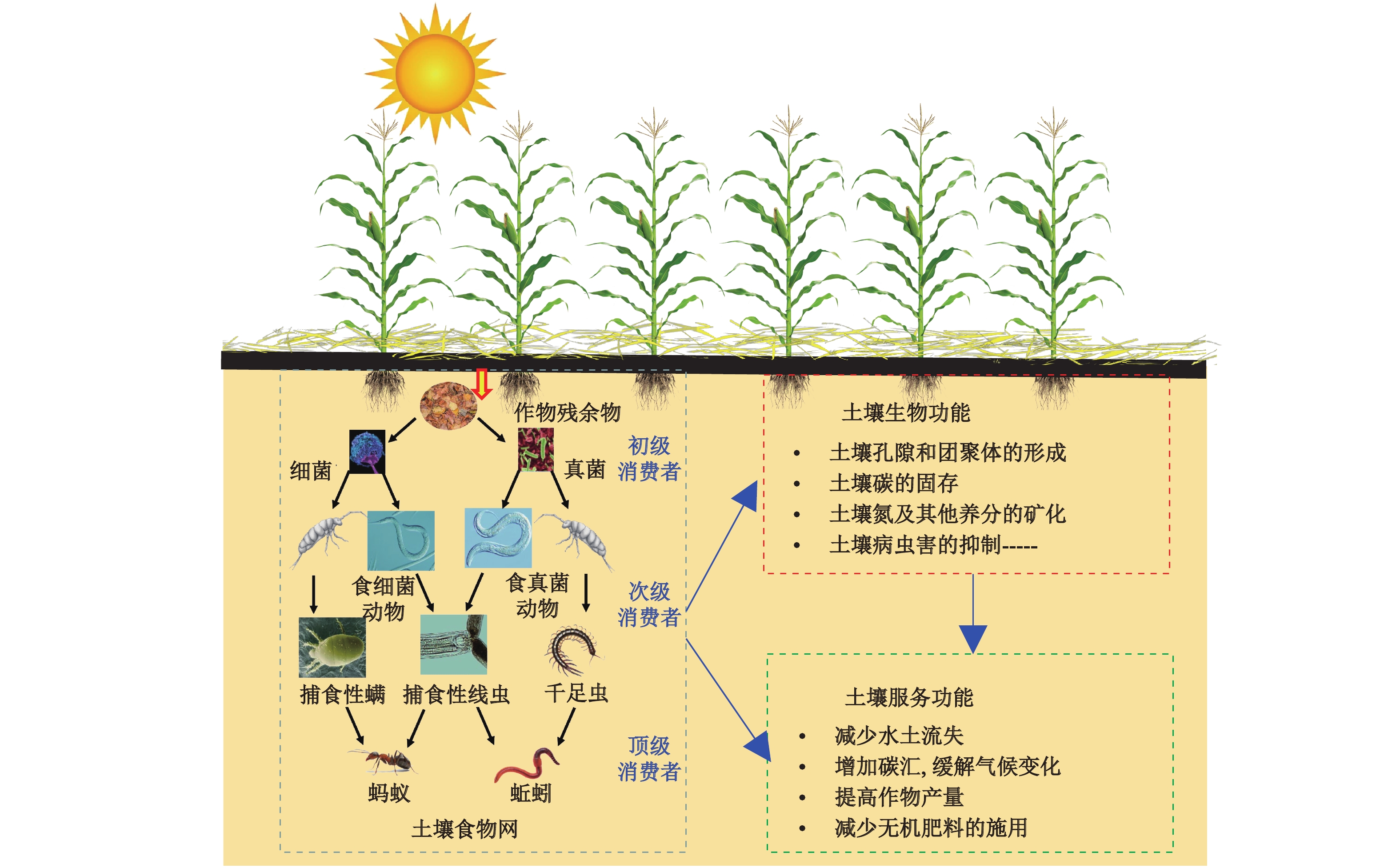 | 图3 保护性耕作下土壤食物网结构及其生态服务功能 |