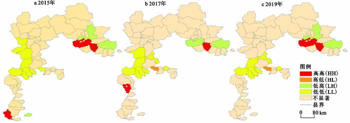 ... .本文采用全局莫兰指数和局部莫兰指数研究空间关联效应,具体计算方法参见文献[21 -22 ].  ...