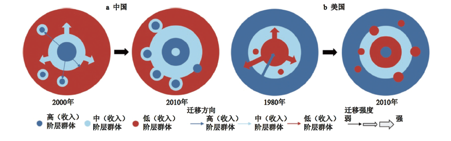 | Fig. 3 The structure and evolving patterns of urban social space in China and the United States |